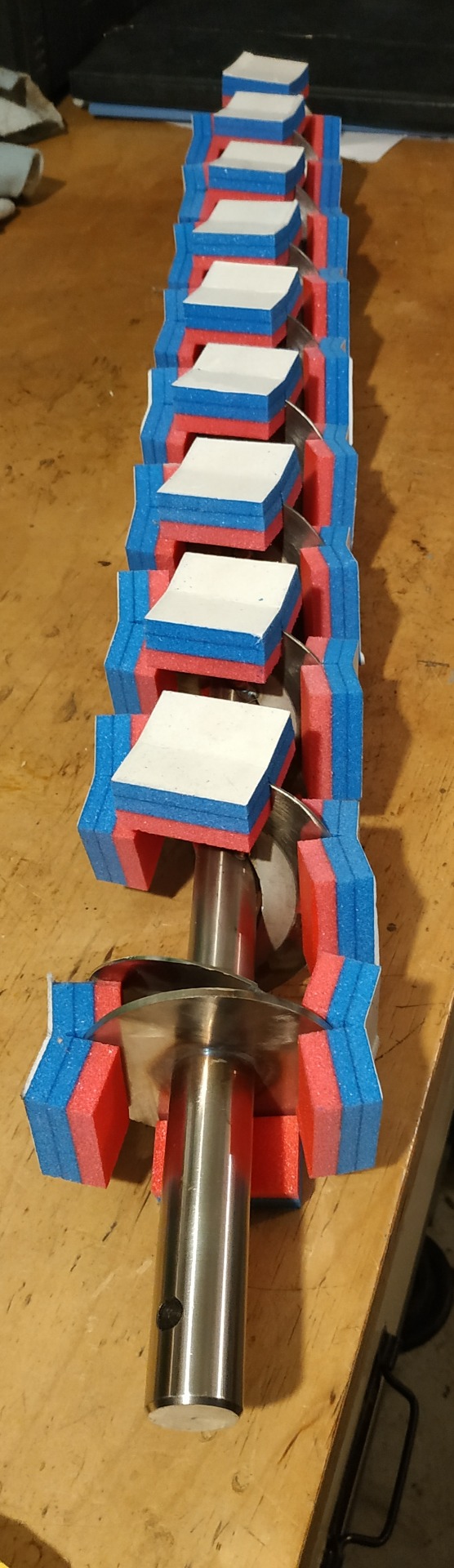 - Hlavní hřídel máme vyrobenou z nerezové kulatiny, ne z ocelové trubky jako originál, proto se náš šnek nikdy nezlomí a nerezová ocel vydrží mnohonásobně déle.